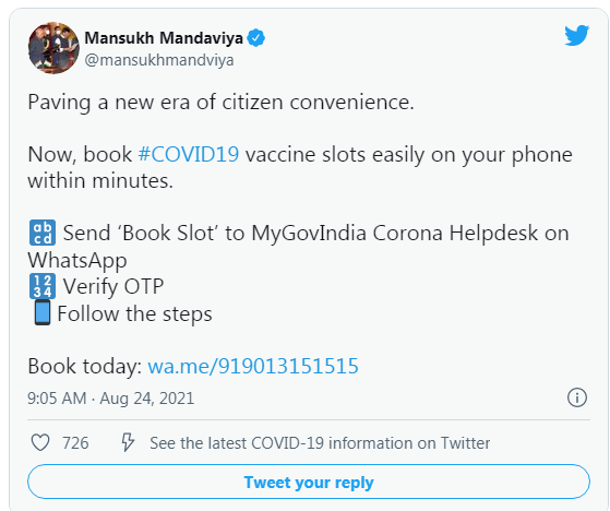 नई दिल्ली: भारत इस साल के अंत तक सभी वयस्कों को टीका लगाने के लक्ष्य के साथ, सरकार ने आज व्हाट्सएप का उपयोग करके...